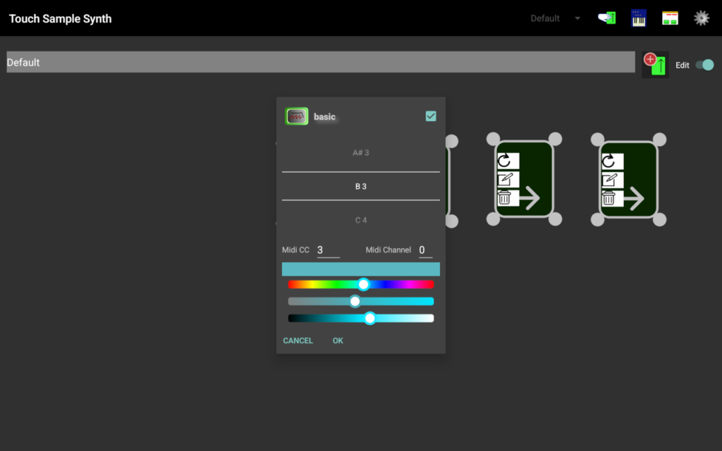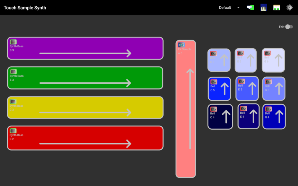 TouchSampleSynth is a Tablet and Phone app for creating music. The core feature are customizable touch pads with touch-and-drag capabilities, aimings its use to, but not only inclusive music with a clear focus to live performance.